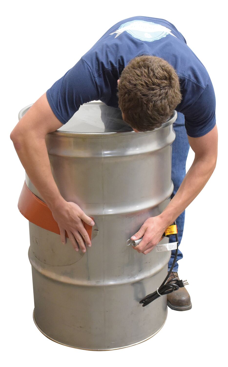 Steel Drum Heater For 55 Gallon Drums RedQuickly and efficiently heat-up your steel drums or pails with a drum heater. Solves a wide range of freeze protection, viscosity control, and process temperature applications. Easily adjust thermostat. This extra-wide silicone rubber band heater is moisture and chemical resistant. Multi-stranded grounded heating element provides uniform heat and a long service life. Spring closure can be expanded. Unit comes with a power cord. Recommended for use with GFCI outlets only. Heater is CE approved (not UL listed).