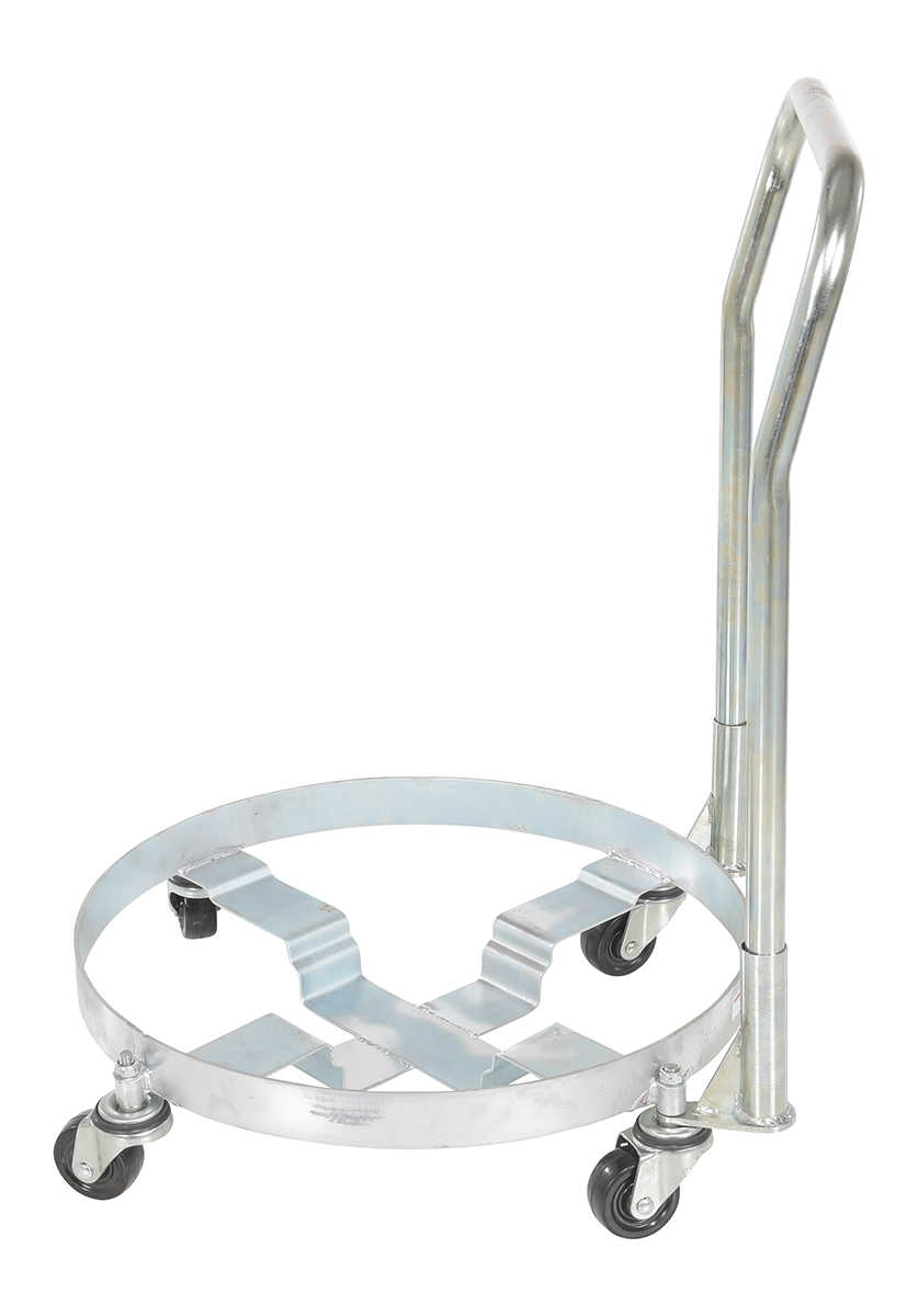 Steel Multipurpose Drum Dolly with Handle 31-9/16 In. x 31-9/16 In. x 35-11/16 In. 900 Lb. Capacity SilverThis multi-purpose quad drum dolly has a high polished bright zinc finish for corrosion resistance. Dolly comes with a handle that lets the user steer and move the unit to the desired location with ease. Casters allows the unit to roll smoothly across a variety of surfaces.