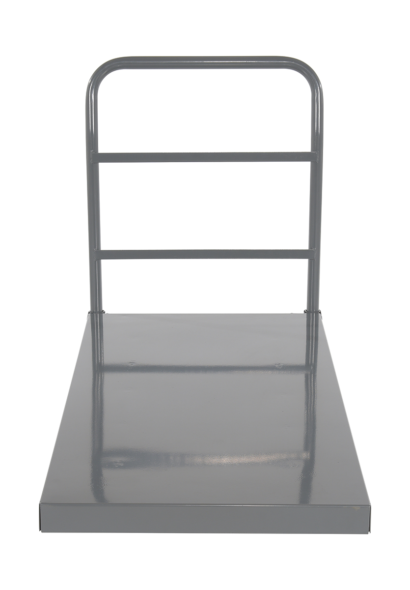 This steel platform truck with a solid, smooth steel deck is all welded and features structural reinforcement underneath for extra strength. Includes one (1) removable high-polished steel handle and rolls smoothly casters. Comes standard with a floor lock.