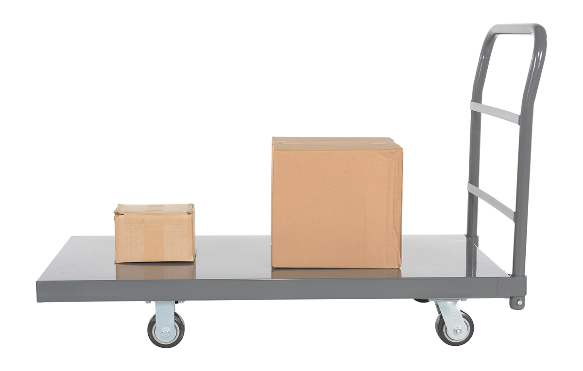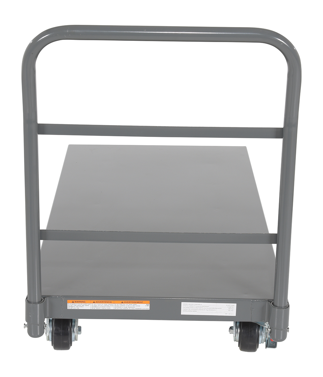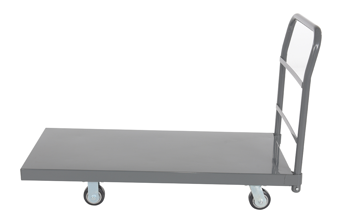 • Platform truck with solid, smooth steel deck is all welded for maximum strength