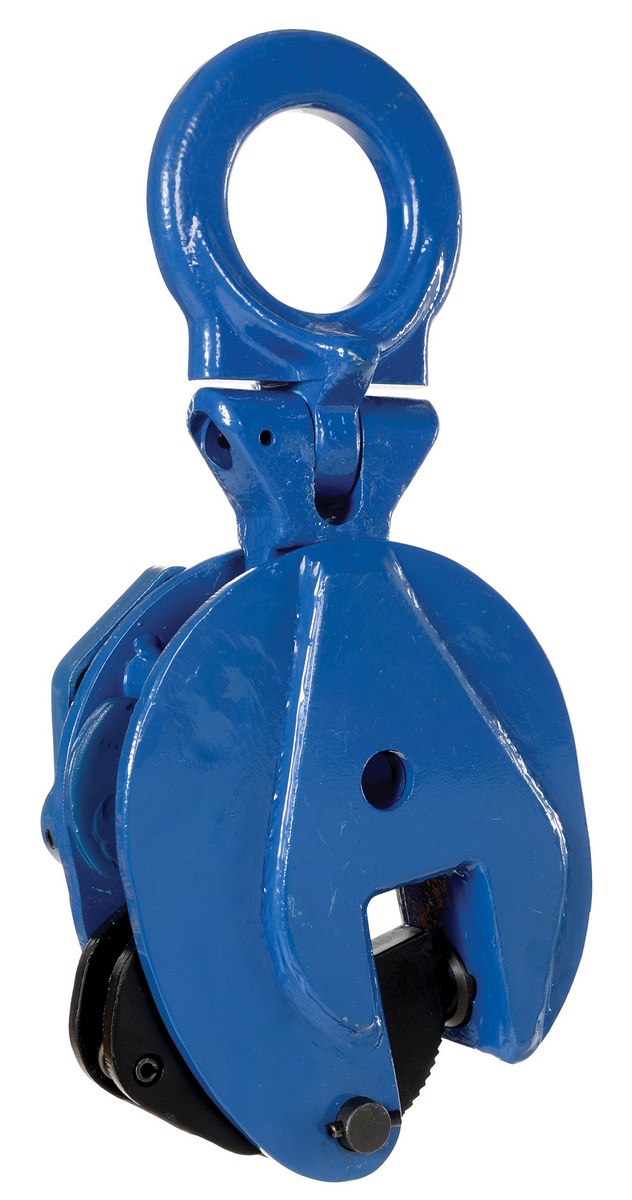 The vertical plate clamp has a pivoting bale for easier and more versatile operation. Features include an automatic serrated hardened steel cams and pads and a drop-forged steel case for maximum strength. Warning: do not exceed the working load limit. Serious bodily injury or property damage may result. Lift only one clean and oil free plate at a time. Not designed to use on stainless steel or aluminum plates. For use with materials with a surface hardness of 30 RC (300 HB).