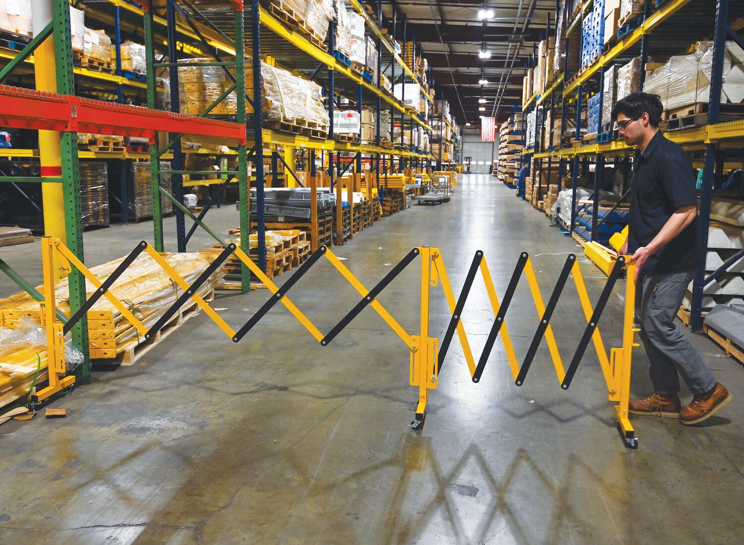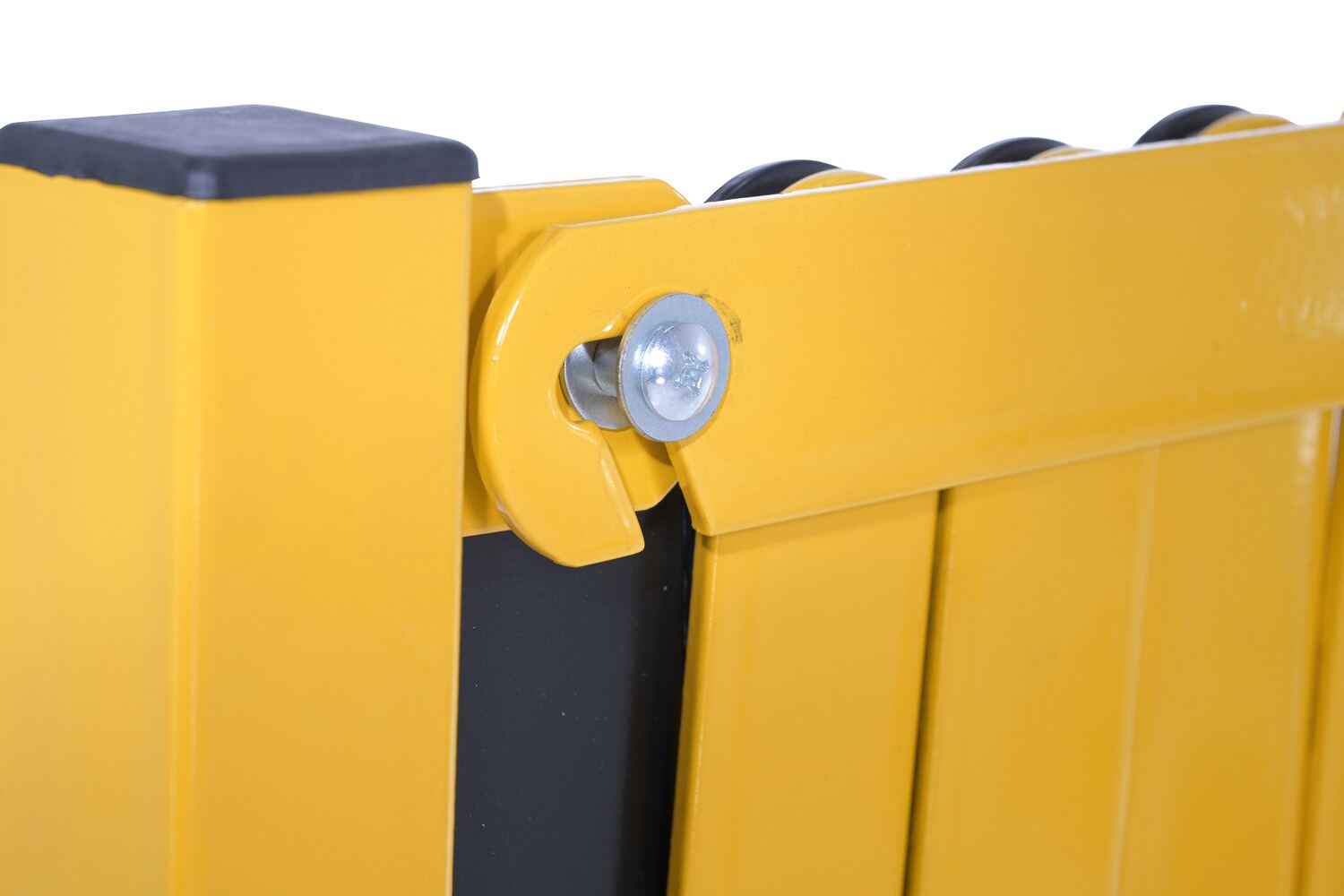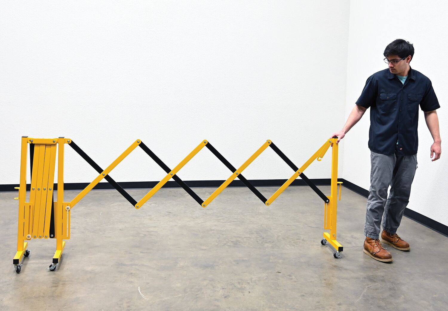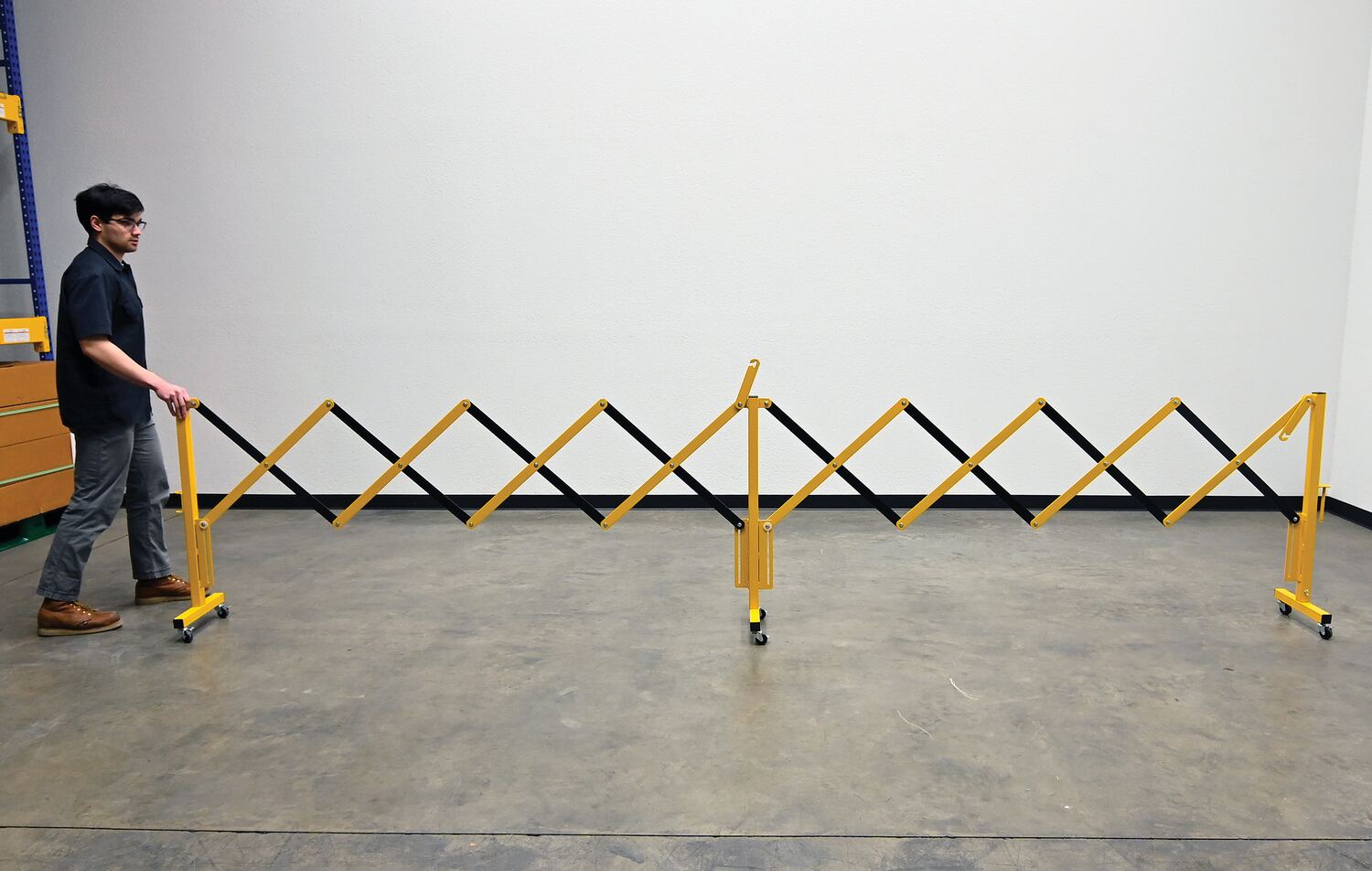 Steel Expand A Gate 192 In. Length Yellow/BlackExpand-A-Gate is designed to block areas where restrictions are in place. The scissor design can be expanded to fit a variety of different sized areas, while also being compacted for a small storage footprint. Rolls smoothly on six swivel casters. Powder coat finish for baked in added toughness. Ships knocked down.