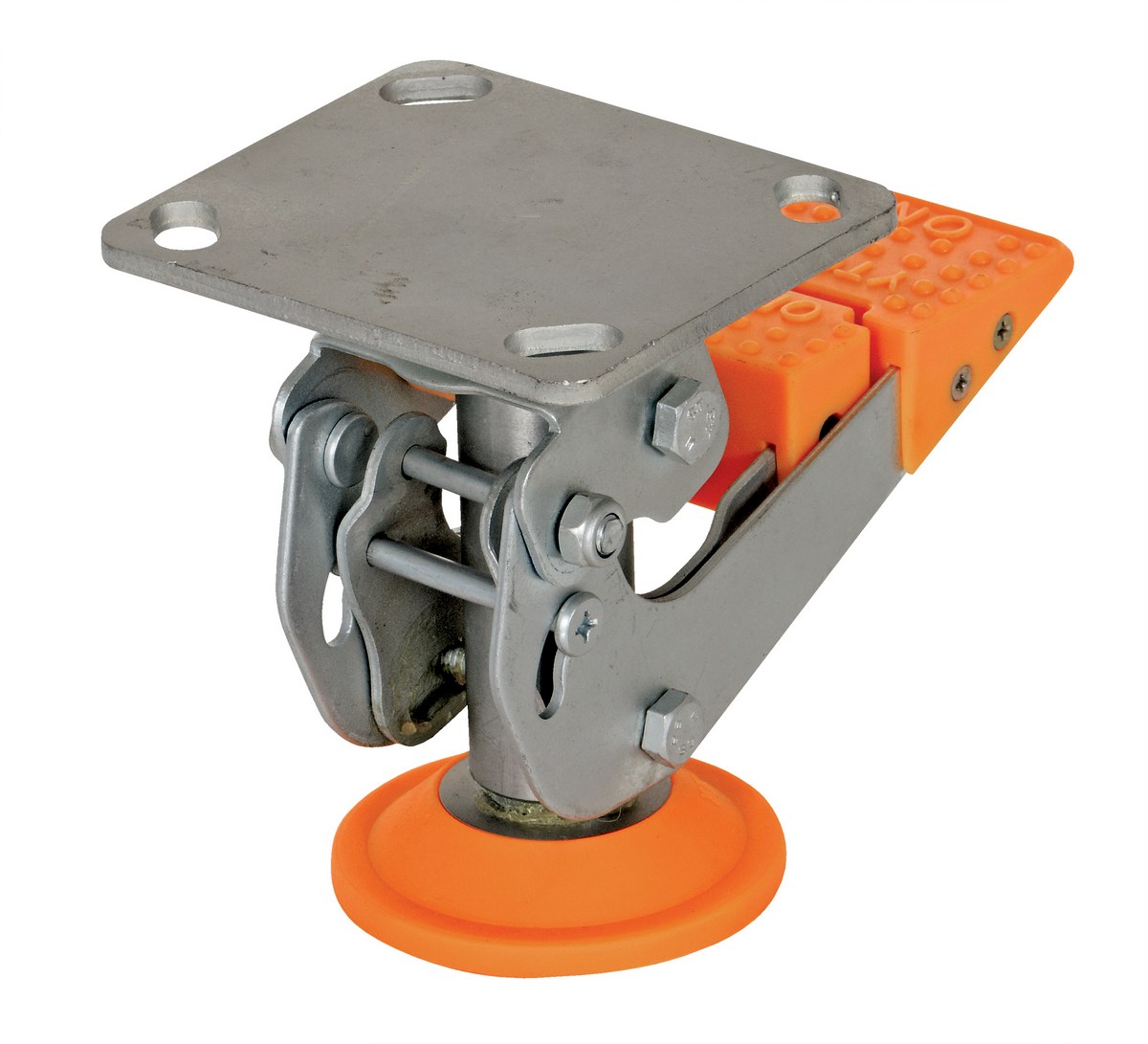 Steel Floor Lock 5-5/8 to 6-3/4 In. Height SilverFloor locks are ideal for maintenance and construction facilities. The unit is designed to created a stable environment, while decreasing the chance of jostling or slight movement. The unit is constructed of steel with a thermoplastic polyurethane base. To use, place the unit close to a desired wheel or caster and raise until tension is built. Once secured, a simple locking device can be activated by applying pressure to the foot pedal.