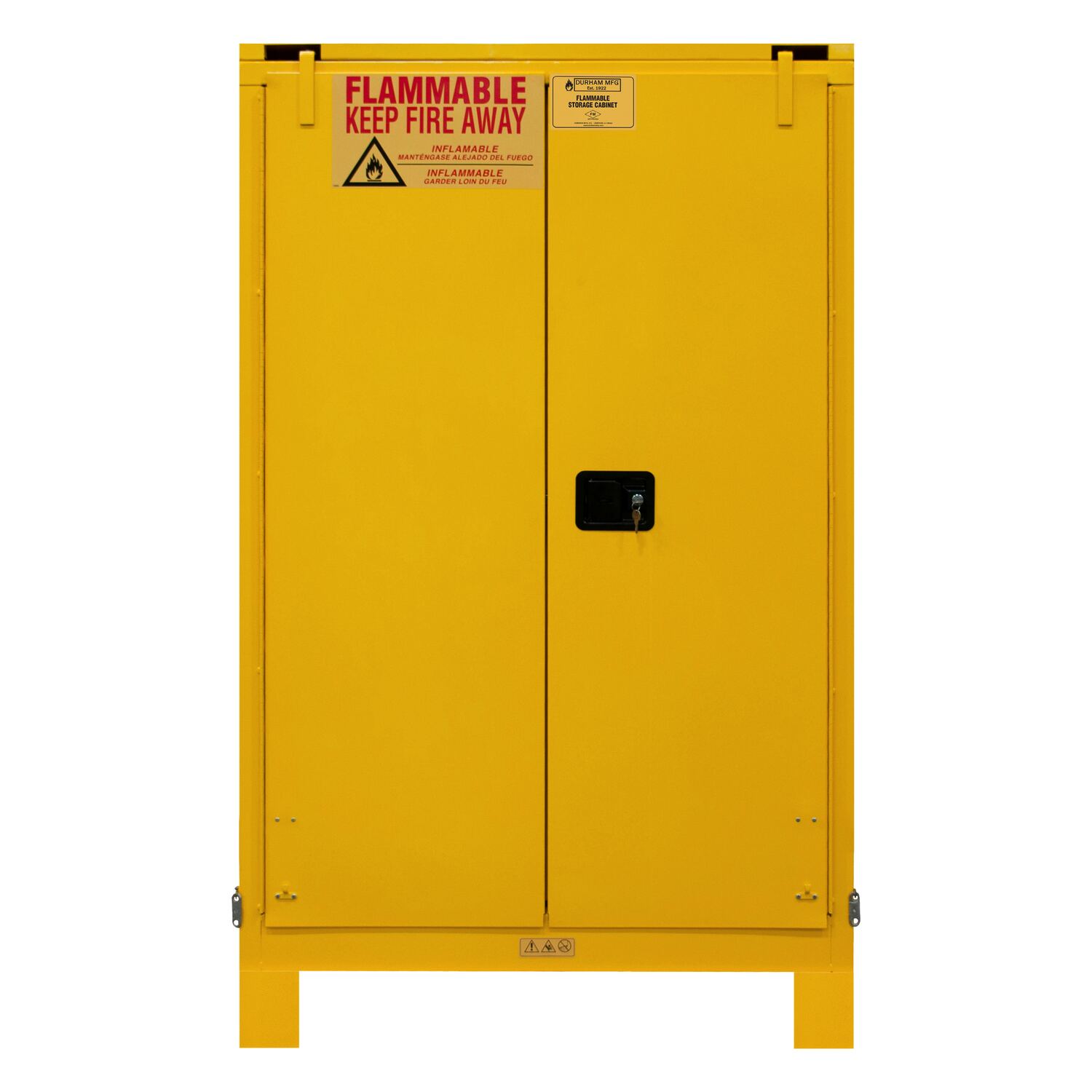 Flammable Self Closing Storage Cabinet With 6 Inch Legs 45 Gallon Capacity Yellow