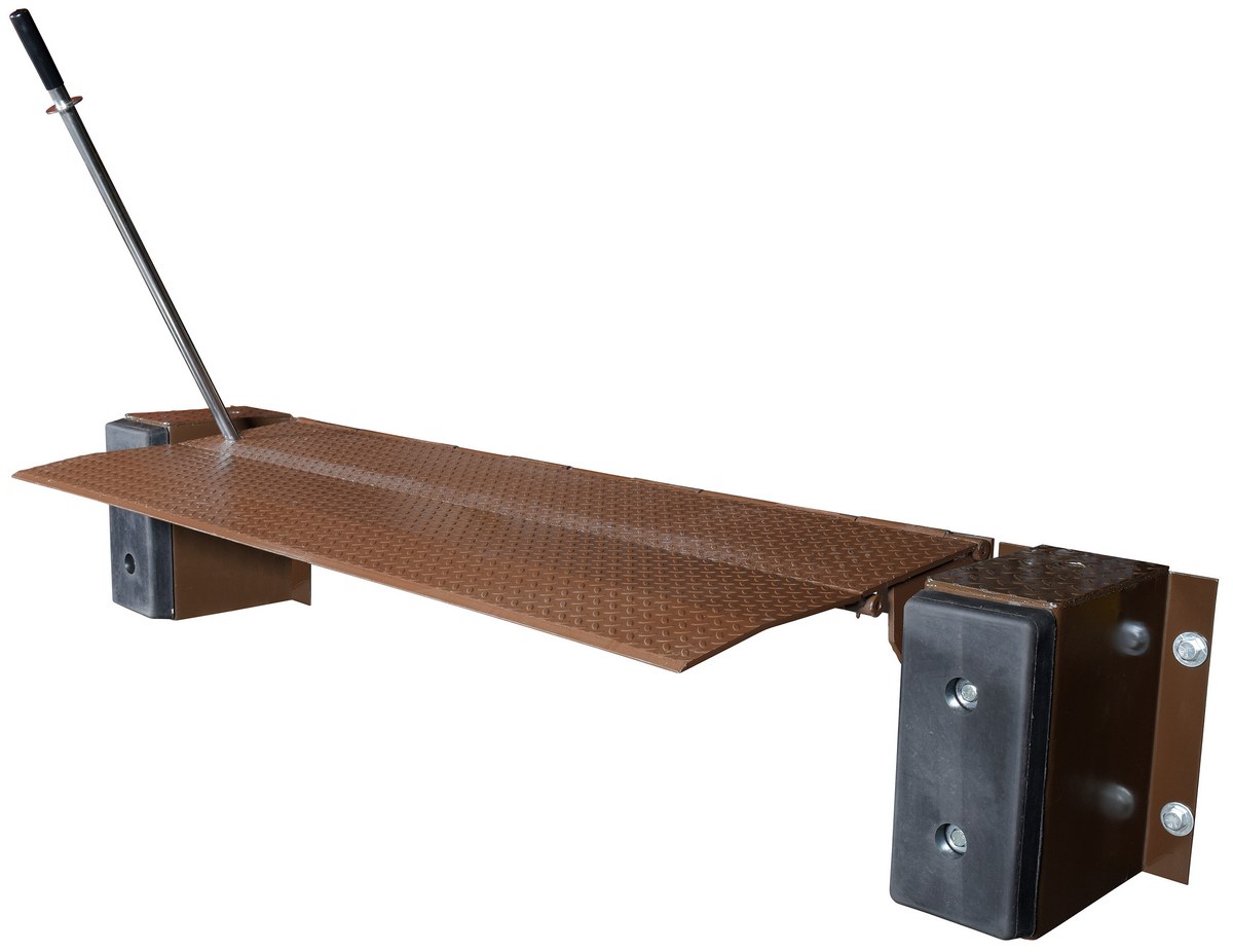 Steel Mechanical Edge-O-Dock Leveler 72 In. Ramp Width 25,000 Lb. Capacity BrownThe Edge-O-Dock leveler permanently attaches to face of dock. It is recommended for docks to be at least forty-eight (48) inches high. When the trailer departs, the lip drops automatically behind the face of the bumpers. It comes complete with bumpers and installation instructions. Standard ramping is twenty-nine (29) inches. A steel dock edge, or approach ramp is required for proper installation. The mechanical Edge-O-Dock is operated by placing the actuation handle into the pocket of the inner lip and pulling down toward the floor. The operator then pushes the handle forward until the lip rests on the truck bed. As the trailer departs, the lip retracts behind the bumper face automatically.