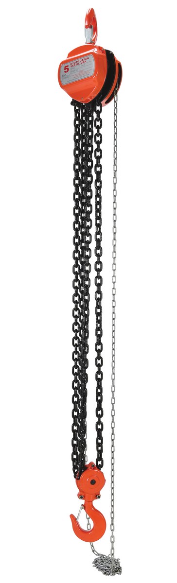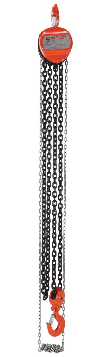 Steel Manual Chain Hoist 10 Ft. Lift 10,000 Lb. Capacity OrangeThe hand chain hoists are ideal for industrial applications. The hoist is light weight, ergonomically friendly to handle, and designed for comfortable use in low headroom /confined areas or work. Features include a pull chain with upper and lower hooks constructed of forged steel for additional strength and hardened two stage gears for a quicker pulling time.