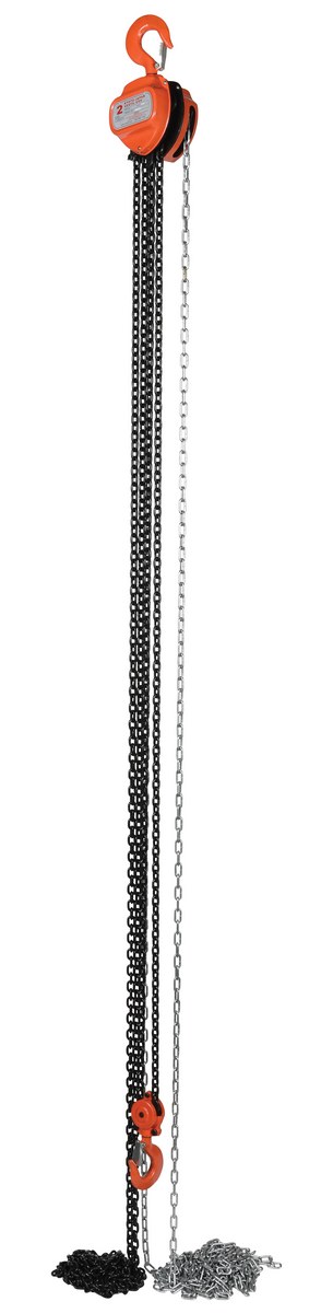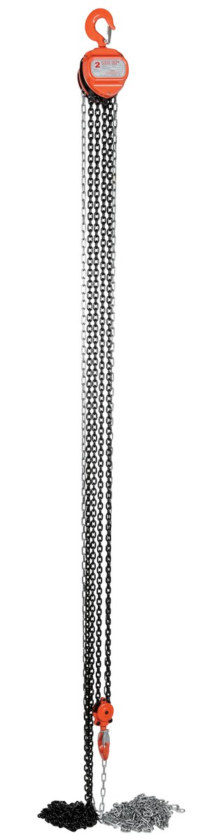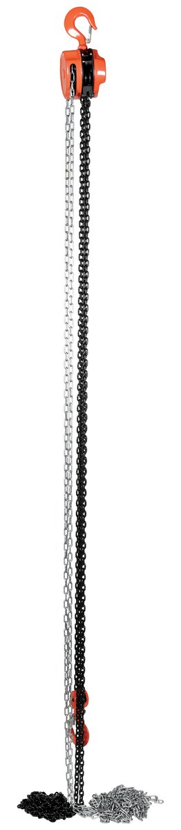 This portable, lightweight hand Chain Hoist is durable and easy to operate. Compact design and low headroom allow installation in confined areas. Enclosed double ratchet pawls with self adjusting disc brake standard. Designed with a safety factory four (4) times rated capacity. Individually tested at 150% rated capacity. Features black chain tempered to ISO 3077, pull chain, hardened two-stage gears and forged steel upper and lower hooks with safety latches. Constructed of high quality steel components ideal for industrial applications.