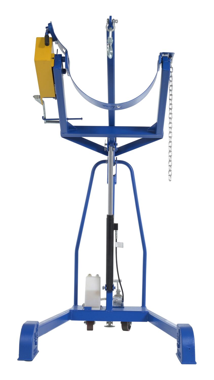 Steel Portable Hydraulic Drum Carrier, Rotator and Boom 71-1/4 In. Lift Height 800 Lb. Capacity Blue / Yellow