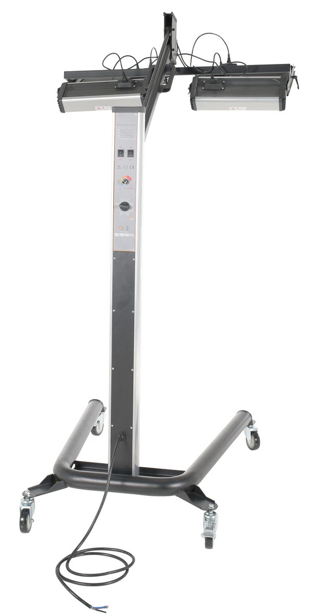 An infrared heater provides beneficial warmth to a variety of industrial areas. A simple to use control panel allows the function and heat settings to be utilized in the best possible way for maximum efficiency. An adjustable heater arm gives the user the ability to maneuver the heating elements into a position that best fits the type of surface that is being heated. Unit includes casters to easily maneuver the unit to and around the work area. A robust structural construction endures work place conditions that are continually changing.
