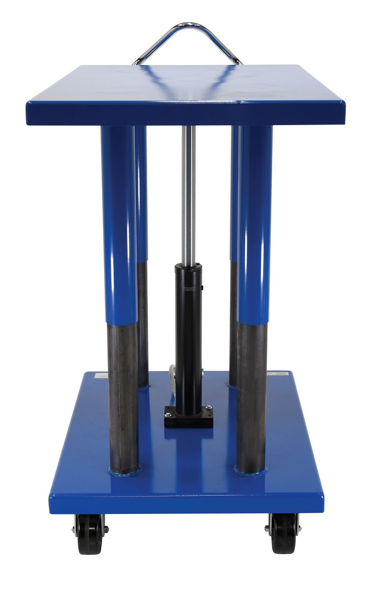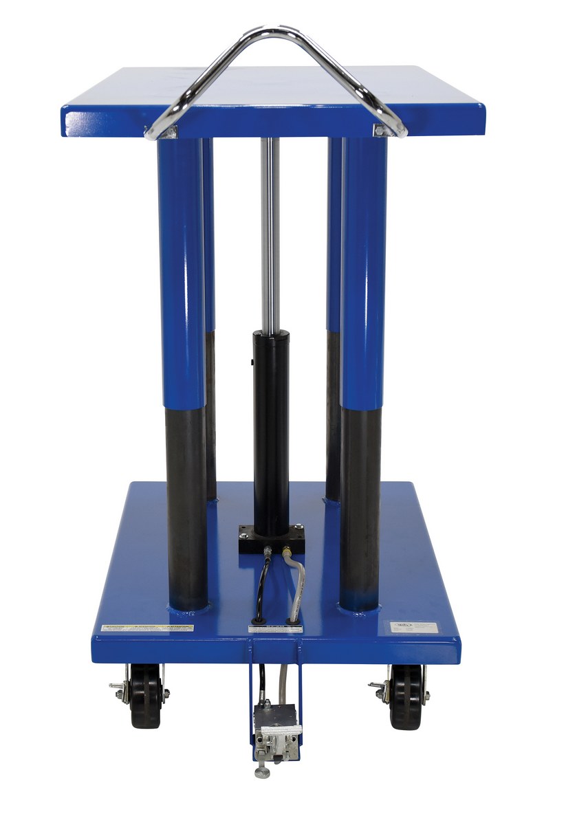 The Hydraulic post table is built for heavy-duty shop use. This post table is good for many material handling uses including: lifting dies and castings, moving machine parts, positioning welders work, leveling feed material for pump presses, conveyors and press brakes, and similar material handling jobs. The posts are telescoping to help stabilize and support loads during operation. Table includes four casters; two locking swivel with brakes and two rigid. The unit features a two-speed auto shifter for maximum operator convenience and safe platform lowering.