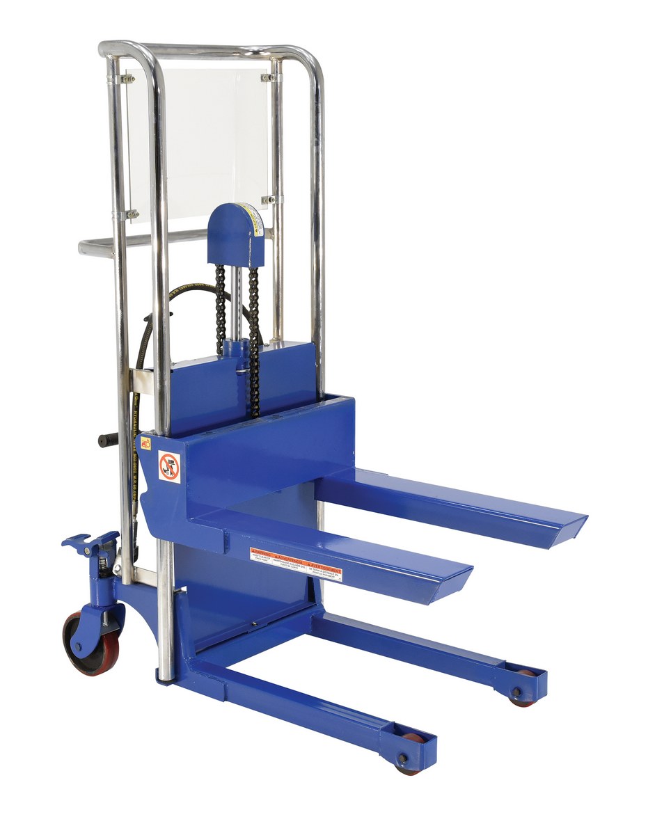 The air powdered Hetti-lifts are great a manufacturing or distributing facilities when space is limited. The single speed foot pump ad hand held push button control (reciprocating air/oil power) raise forks to the desired location. The foot pump can be utilized to maneuver the table height to a precise position. The unit requires a minimum hose diameter of 1/4" and air pressure of 72 to 100 psi.