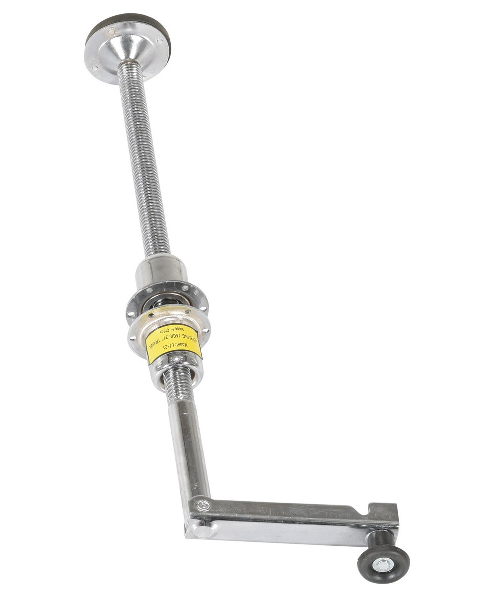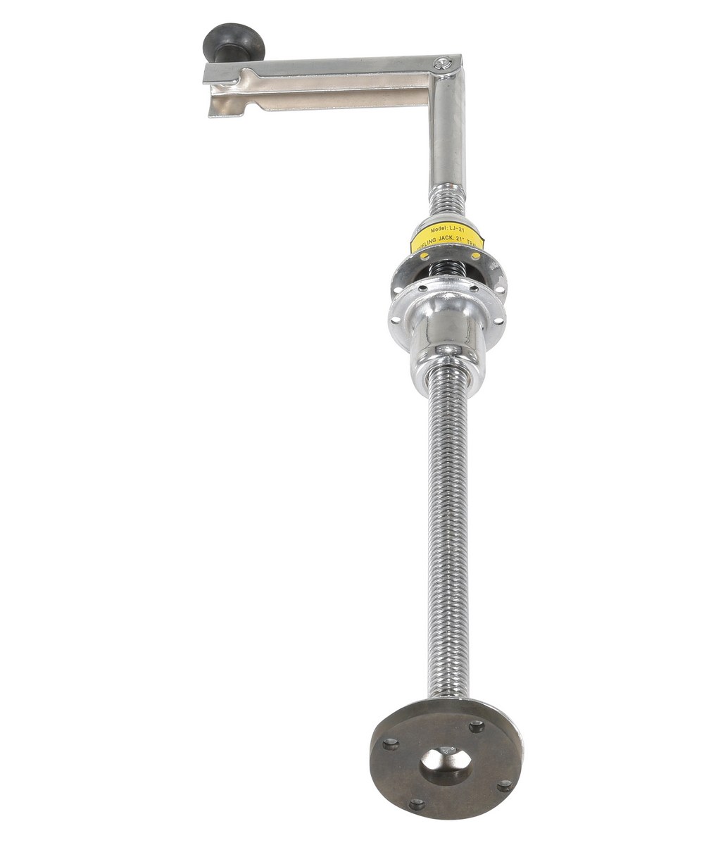 Steel Leveling Jack 30 In. 5000 Lb. Capacity SilverThis leveling jack is designed for permanent installation, screw-style jack hold platforms and other equipment in place and stabilize them at the required height. Drill a one and one quarter inch (1-1/4") diameter hole through the platform to be leveled and bolt the platform between the upper and lower flanges of the jack's divided housing. Jack has a handle that folds down when not in use. Swivel base has a slip-resistant rubber pad on the bottom (replacement pads available).