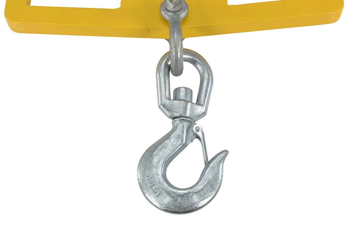 Steel Fork Truck Hook Plate Swivel with Latch 10,000 Lb. Capacity YellowA lift-master hook plate is wonderful asset for securing and lifting heavy loads. With a strong steel construction the lift is easily maneuvered by utilizing the two fork slots. A centrally located hook and latch are also included for simple securing of the product being lifted. A sleek, compact design takes up minimal room when not in use. A centered built in handle is great for lifting and moving by hand.
