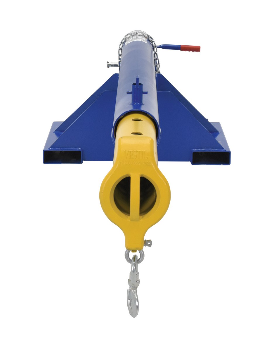 Steel Orbit Telescoping Lift Boom 30 In. Fork Pocket Center 4,000 Lb. Capacity BlueUnique performance, convenience, and safety features are built into every lift master boom. Fabricated from structural steel with welding to meet AWS creates a rugged and durable boom that will provide long term service. A safety restraint secures the boom to the fork truck for safe operation. Includes two (2) lifting hooks.
