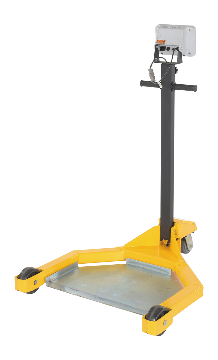 Why bother taking the time to weigh drums at a designated location when you can do it on the go. The low profile drum scale allows the user to weigh the drums while they are being transported. Simply maneuver the drum onto the platform and a read-out of the weight will appear on the screen located near the handle of the dolly. Powder coated black and yellow for increased toughness during daily use. Poly casters are included for simple and a smooth rolling across a variety of surfaces. When not in use, the handle folds down onto the loading platform for a simple storage.