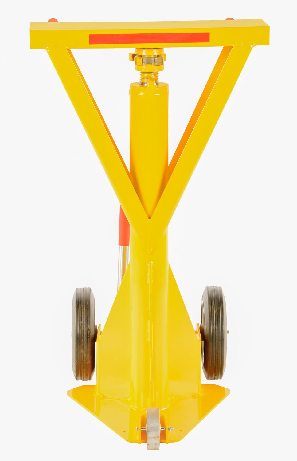 Trailer stabilizing jacks are used to prevent up-ending of semi-trailers when they are not connected to a tractor during loading and unloading operations. Throughout the loading and unloading process it is always recommended to use two jacks, one on each side of the front of the trailer. The trailer must be situated on a flat, stable and improved (preferably concrete) surface, while the jack sits perpendicular to the underside of the trailer. Every jack is built of a high strength steel construction with a flush-type Zerk fitting for lubricating ACME screw. A yellow powder coat finish is included. **The color of handles included with models may vary between red and black**.