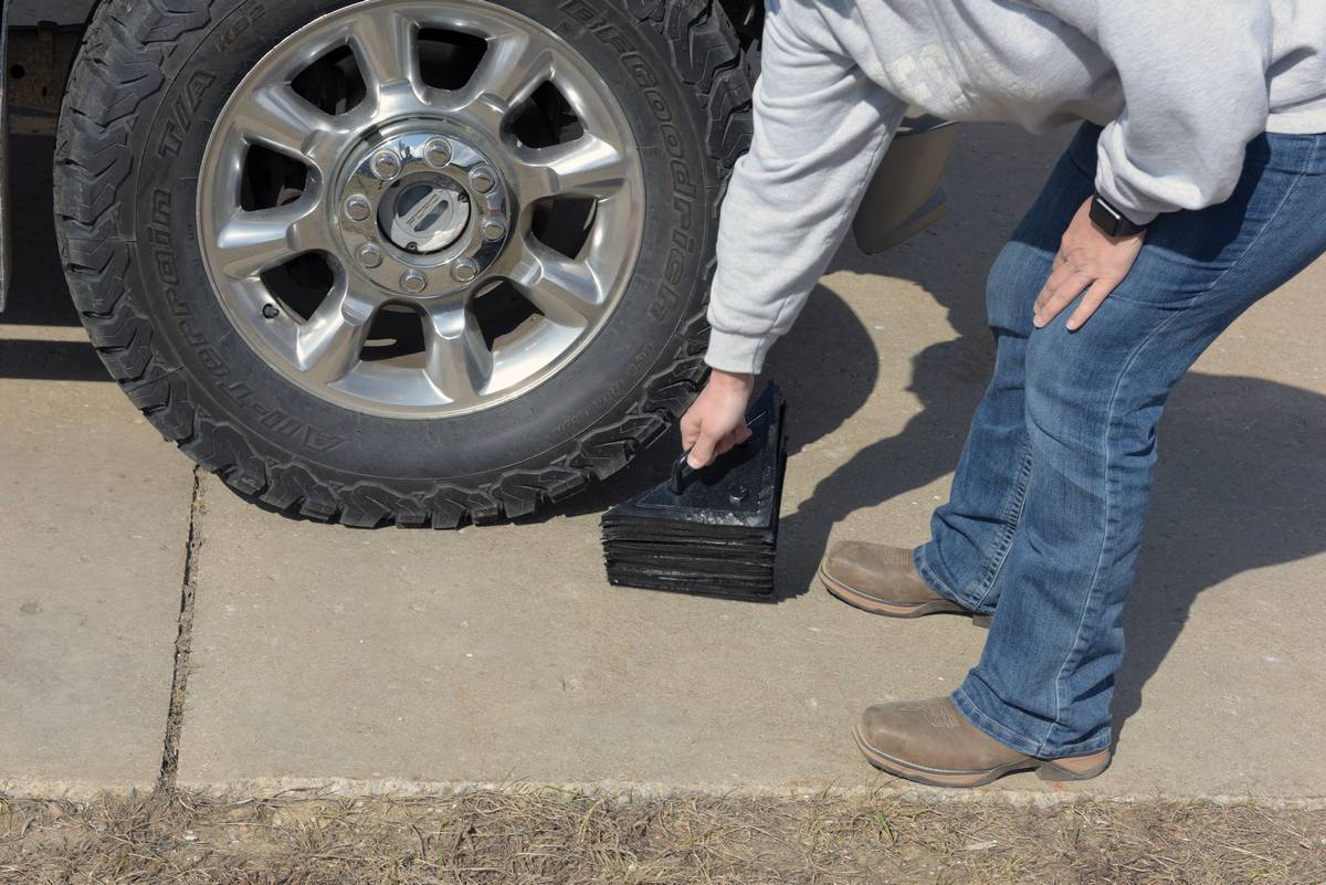 The rubber Wheel Chock is constructed of reinforced rubber to provide a sure grip on virtually any surface. The curved surface contours to fit tires. Rubber resists tearing, abrasion, ozone weathering, etc. The functional design is durable in all weather conditions.