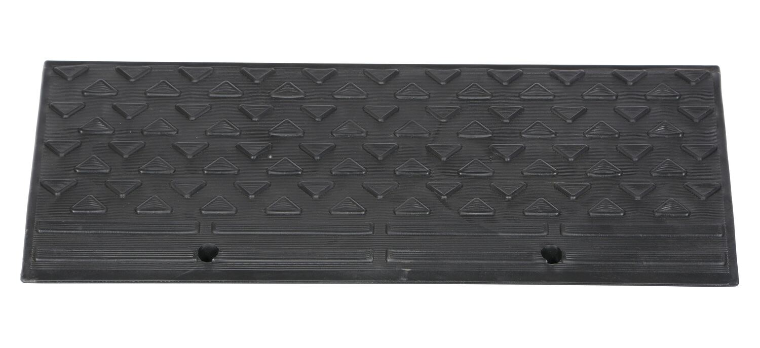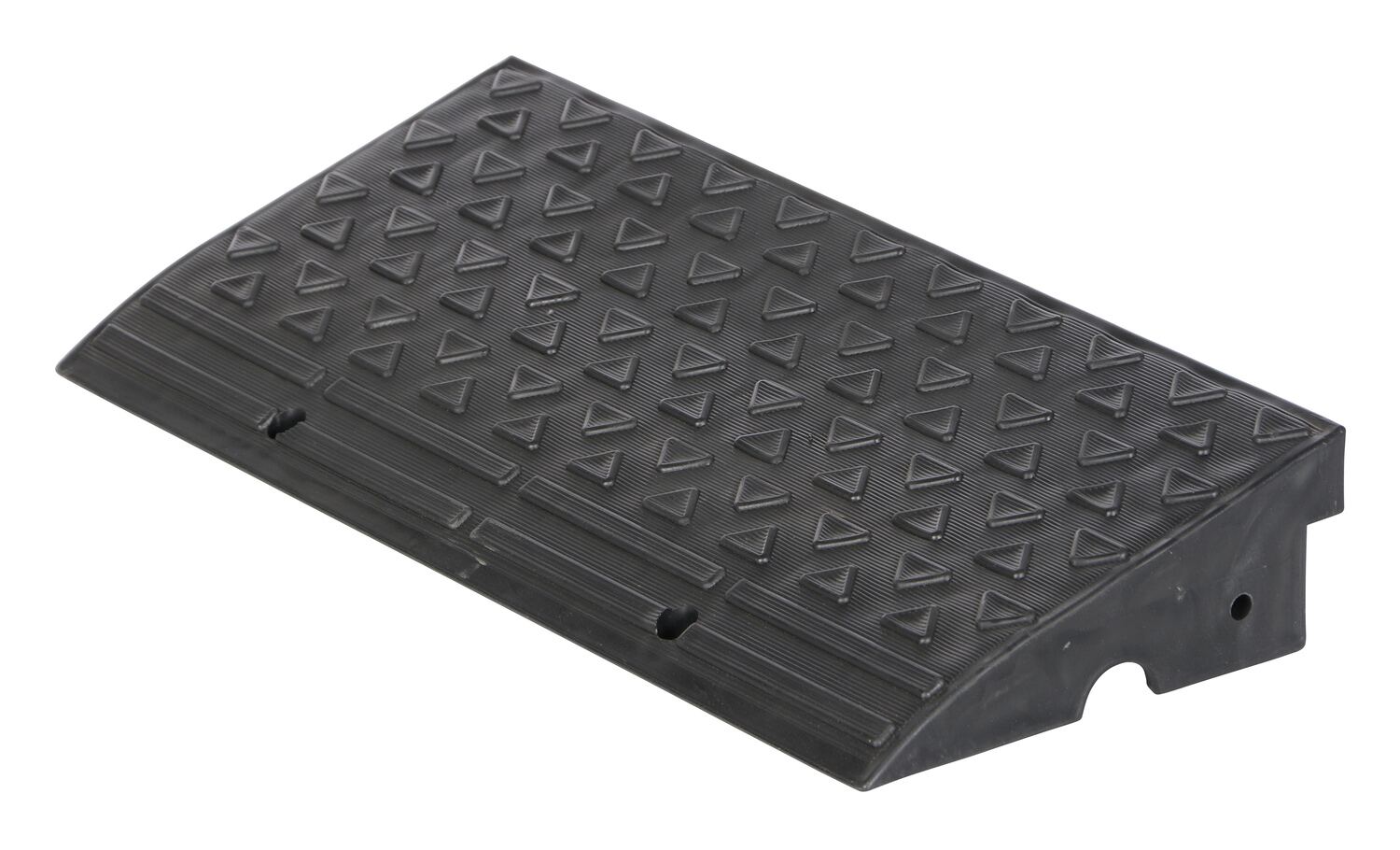 Plastic Multi Purpose Ramp 10-5/8 In. x 23-13/16 In. x 3-7/8 In. 5000 Lb. Capacity BlackThe multi-purpose ramp is a high impact ramp that is perfect for a variety of work environments; postal routes, schools, hospitals, warehouses and delivery routes. This ramp makes it simple to move loads onto a curb or over hoses and cables. The textured non-skid surface allows for sure footing on the incline and decline. The lightweight and completely portable unit handles hand trucks and other wheeled equipment with ease.