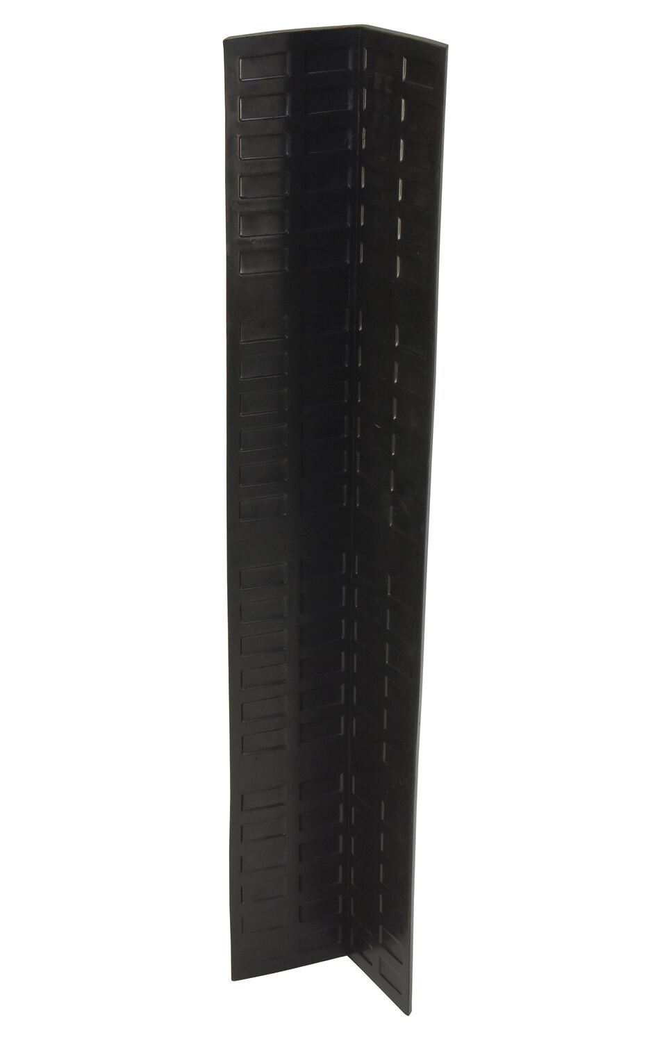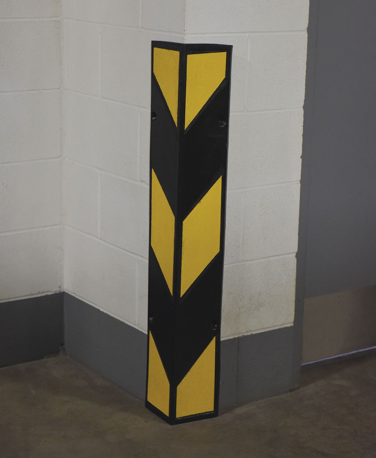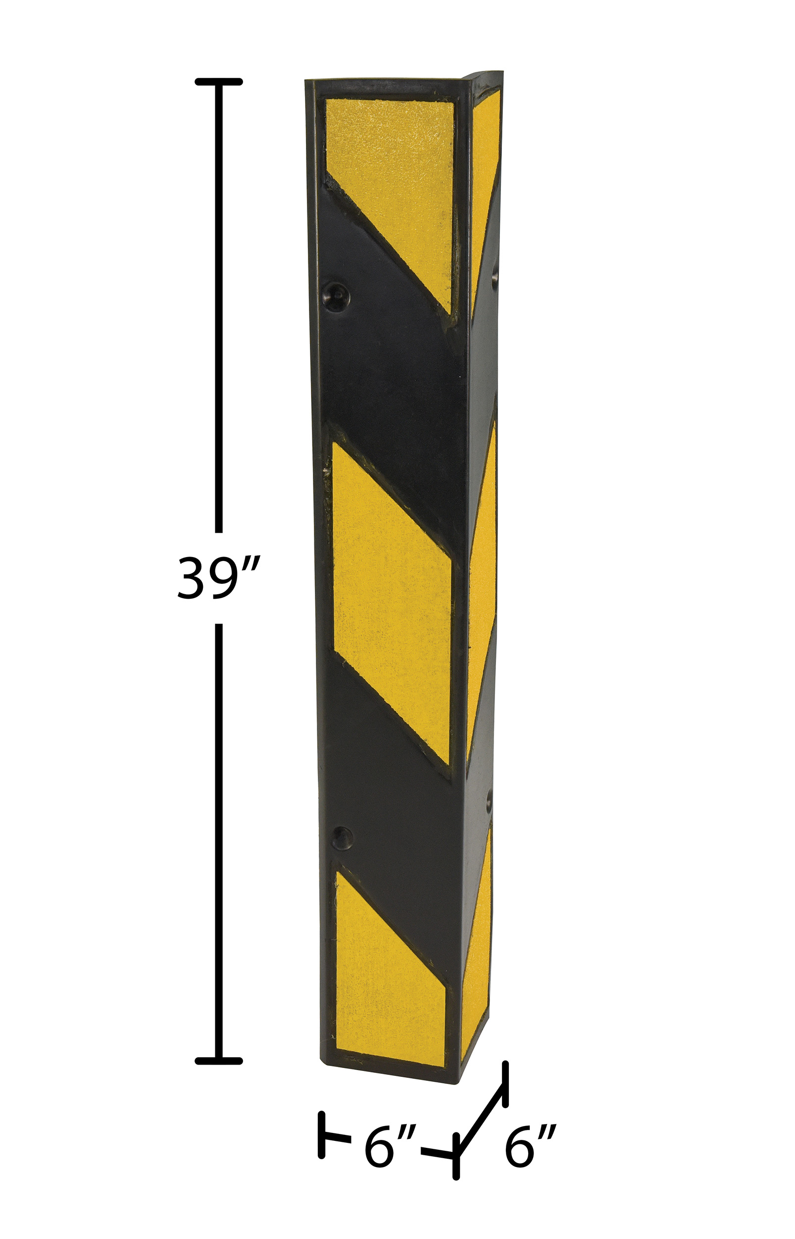 Molded Rubber Corner Protector 6 In. x 6 In. x 39 In. BlackThis heavy-duty corner protector is designed to protect corners from damage. Extremely versatile protection for in warehouses, offices, overhead door frames and tracks, or any ninety (90) degree corner. Made from black molded rubber. This corner protector includes reflective safety yellow tape for higher visibility. No pre-drilled holes.