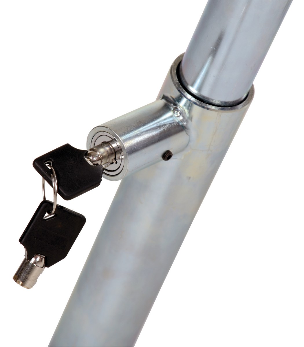 Galvanized Heavy Duty Fold Down Parking Hoop 34 In. x 12 In. x 18 In. SilverThe hoop bollards are ideal for industrial and distribution facilities. The heavy duty, steel construction is durable and long lasting through the harshest of environments. When engaged, the parking hoop is both a visual and safety barrier. Easy to operate. Secures in both open and closed position via internal lock, two (2) keys included.