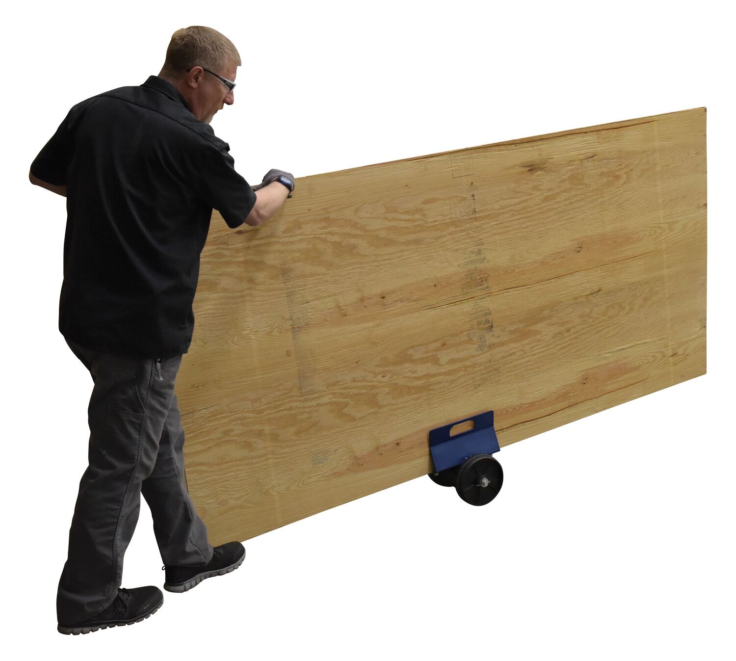 This heavy-duty plate/slab dolly has an auto-clamp feature. The unique design grips plate/slab when weight is added. Opening for use with thick plate/slab. Hand holds are great for carrying. Steel construction with line-X lining inside.