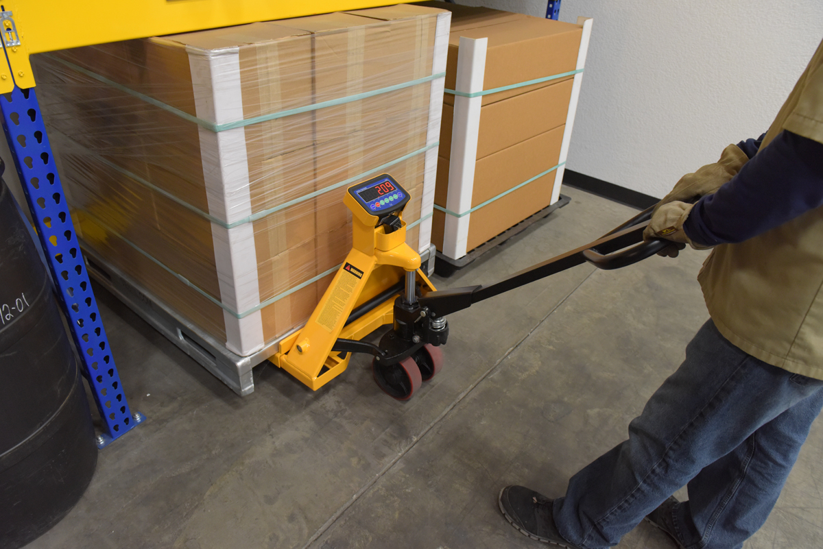 Steel Low Profile Economy Pallet Truck with Scale 67-1/2 In. x 27 In. x 47 In. 5000 Lb. Capacity YellowAn economy pallet master with a digital scale helps to maximize efficiency in the workplace. The scale allows the user to weigh the load on the spot for more streamlined shipping experience. A hydraulic hand pump operation lets the user find the perfect positioning. The frame is designed of steel for maximum strength and durability. The scale includes many options that can be selected to best fit the users’ needs. A powder-coat finish minimizes abrasions that may occur during handling.