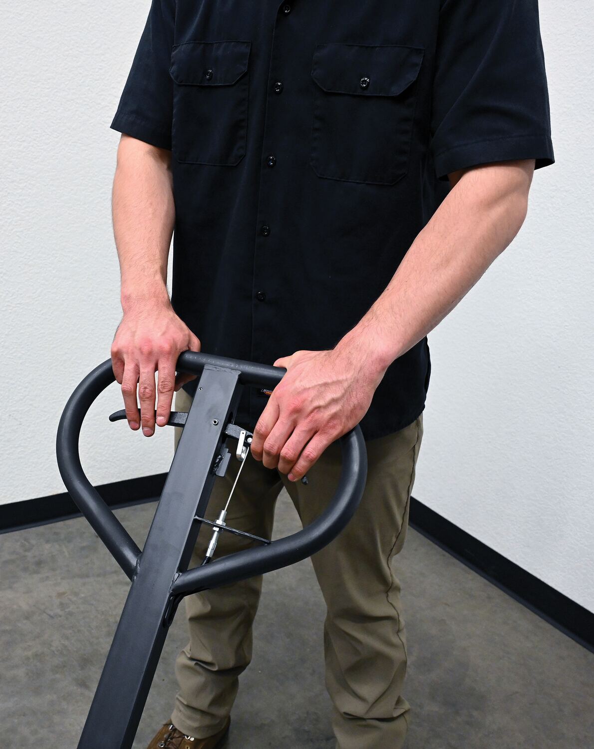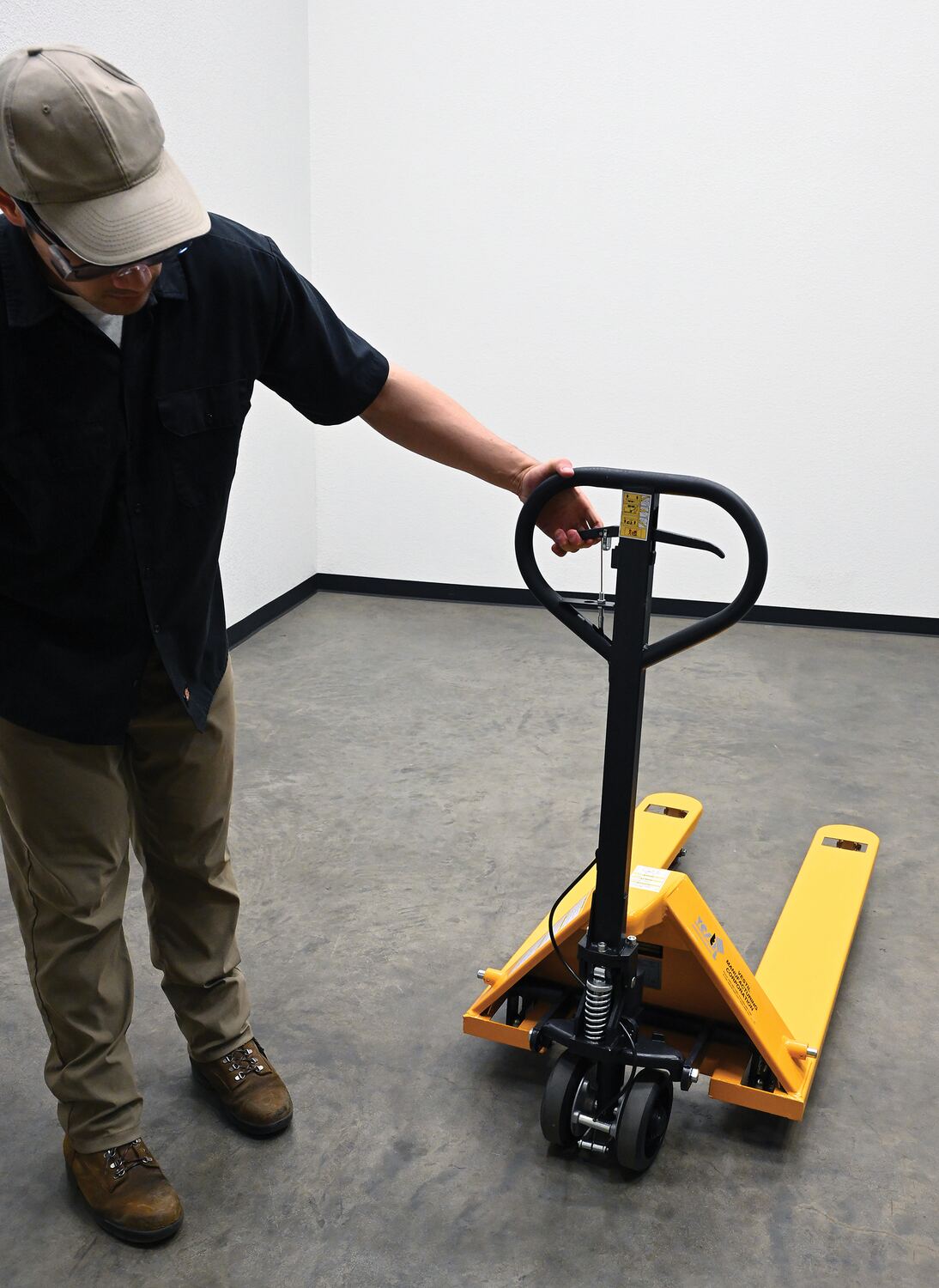 The pallet truck with hand brake option allows you to depress the hand brake to slow down or stop truck.