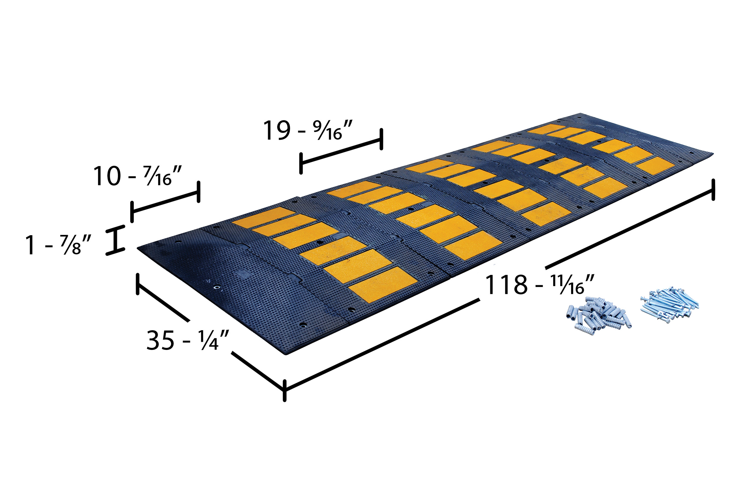 Rubber Speed Hump Concrete Hardware 118-11/16 In. x 35-1/4 In. x 1-7/8 In. 60000 Lb. Capacity Black / Yellow