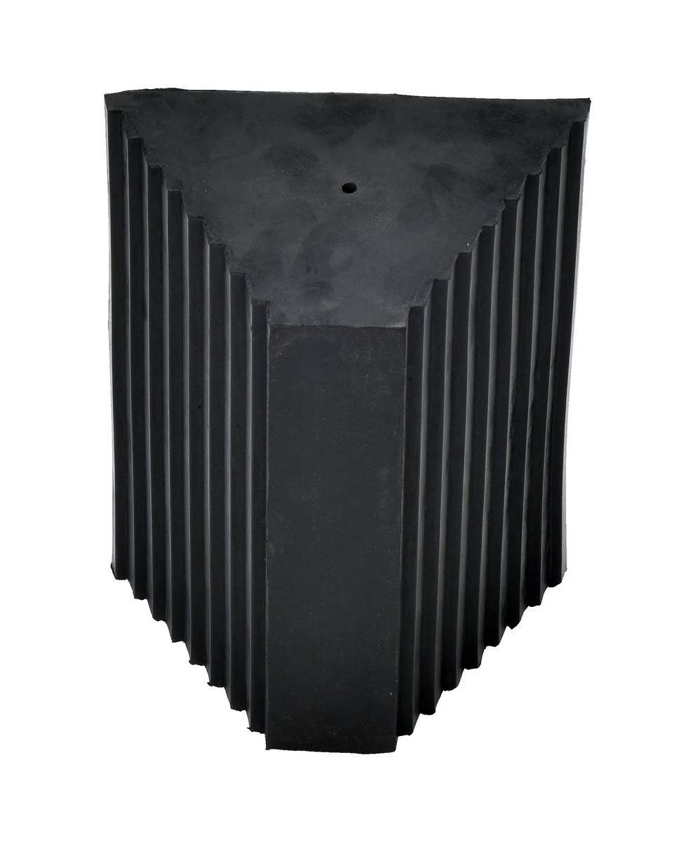 The rubber wheel chocks are constructed of reinforced rubber to provide a sure grip on virtually any surface. The curved surface contours to fit tires. Rubber resists tearing, abrasion, ozone weathering, etc. The functional design is durable in all weather conditions.