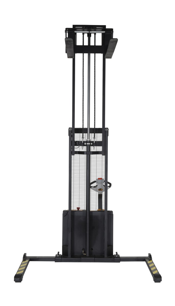 Steel Adjustable Double Mast Stacker 125 In. Raised Height 2200 Lb. Capacity Black / Yellow