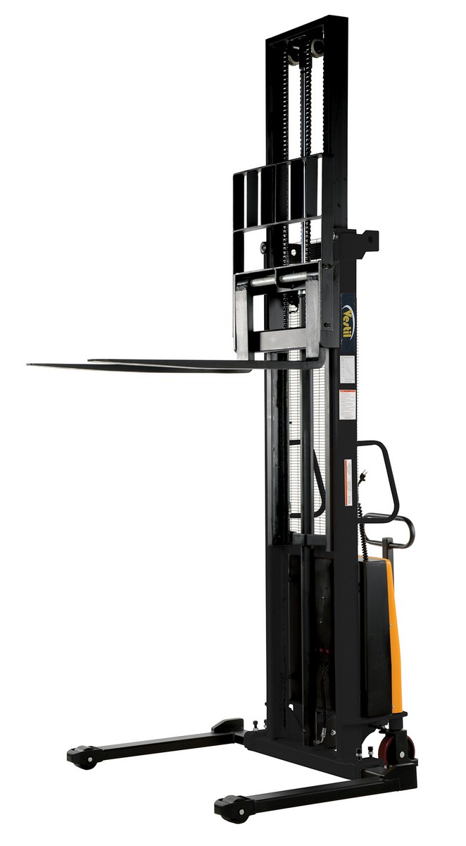 Steel Adjustable Stacker with Powered Lift 150 In. Raised Height 2,000 Lb. Capacity Black / Yellow