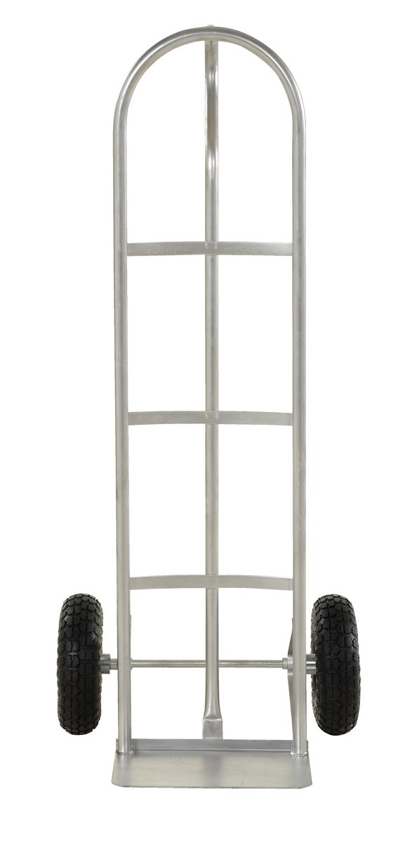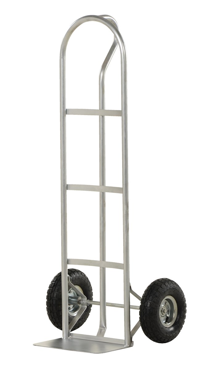 Galvanized Steel P-Handle Truck with Pneumatic Wheels 500 Lb. Capacity GrayThe "P" handle Hand Truck is ideal for transporting heavy and awkward loads. This truck works well for the user that needs to free up one hand. The "P" shaped handle makes the truck easy to steer and maneuver. Axle and wheel hub not stainless steel.