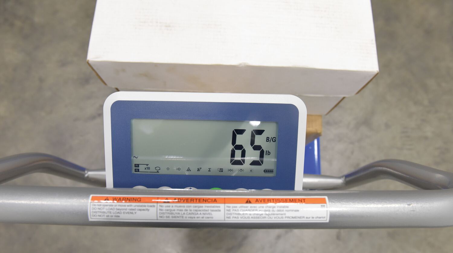 | Caster Material: Glass-Filled Nylon | Handle Height (in.): 40 | Scale Battery Quantity/Type: (6) AA |