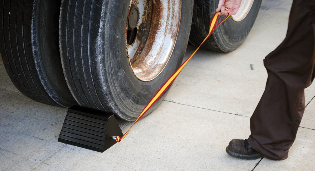 This wheel chock nylon strap is designed to keep chocks at the dock and provide a quick and easy way to quickly remove chocks.