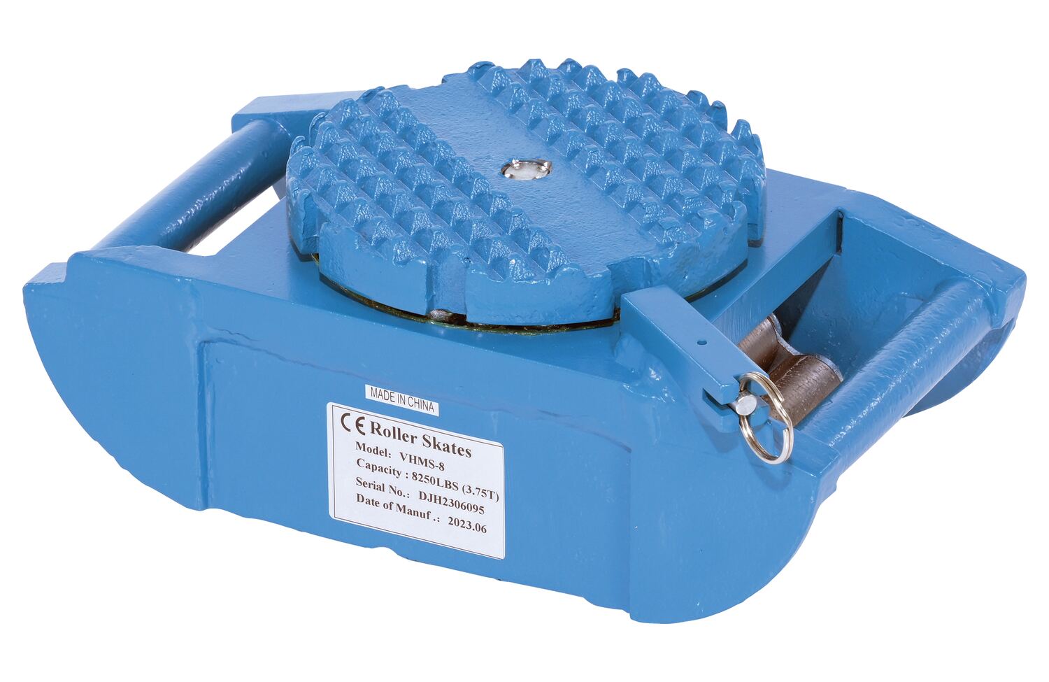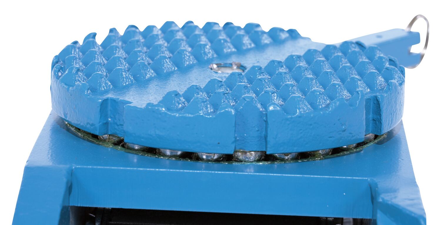 Steel Machine Roller 8,250 Lb. Capacity BlueMade of high-strength annealed ductile iron, this steel machine roller has swivel tops that rotate three hundred sixty degrees (360 degrees) on chrome steel ball bearings to allow for easier turning. The rollers form a "tank track" to revolve around a center load bearing plate in the frame to provide maximum maneuverability. The weight of the load is transferred directly from the load bearing plate to the rollers, eliminating axle friction and requiring less power to start and move. This unit is virtually maintenance free.