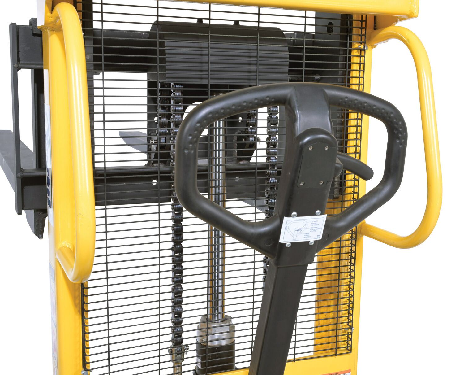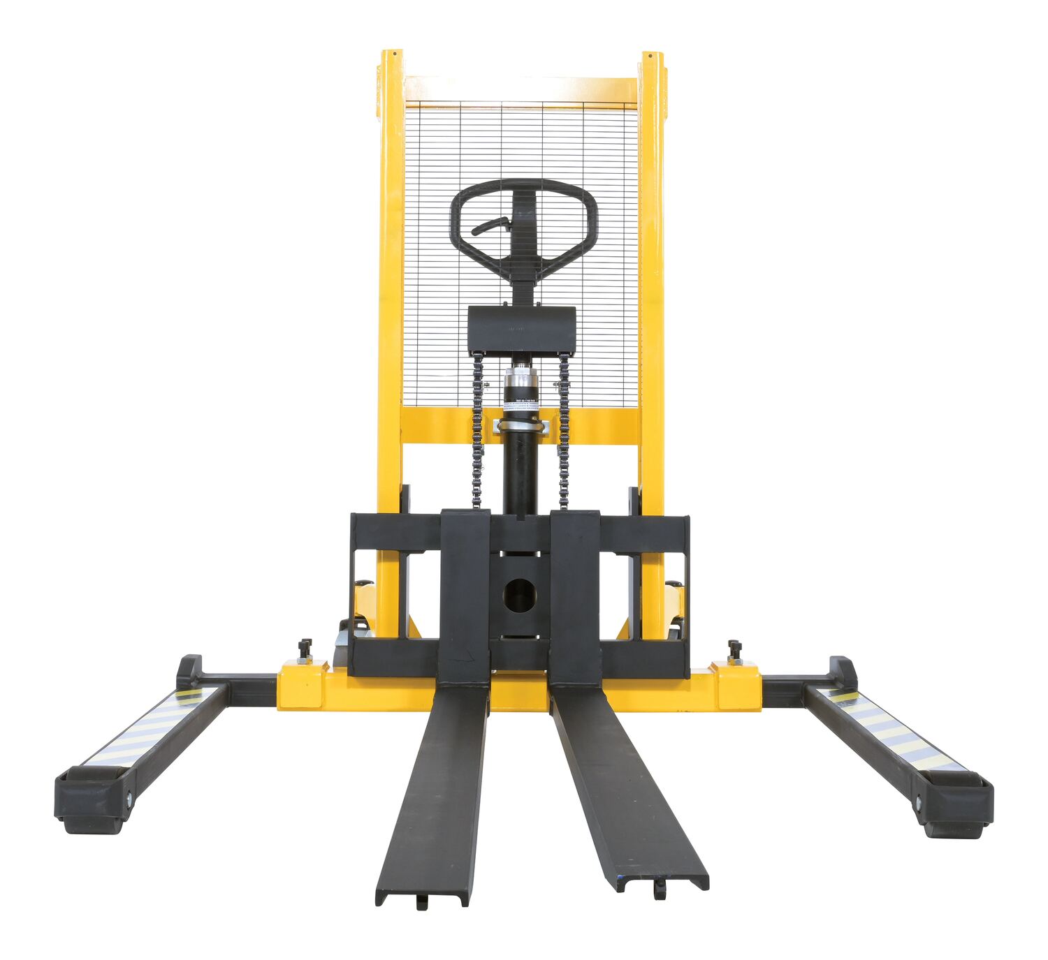 Steel Manual Stacker Adjustable Forks/Legs 550 Lb. Capacity Black / Yellow