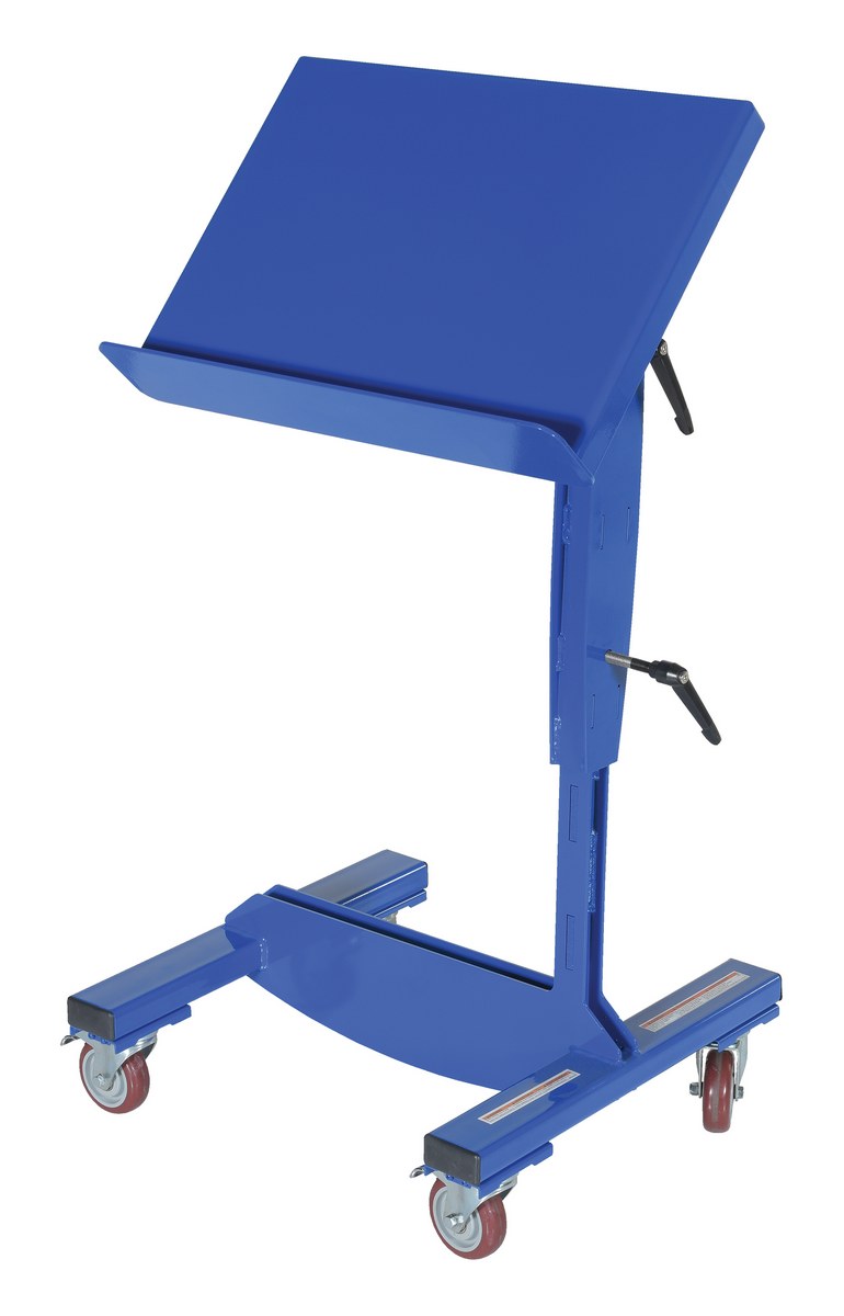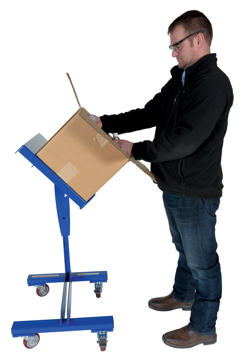 The mobile tilting work table is designed to bring work to an ergonomically correct position. A raised edge provides stability when completing forms or compiling inventory data. Open design that is accessible form all sides.